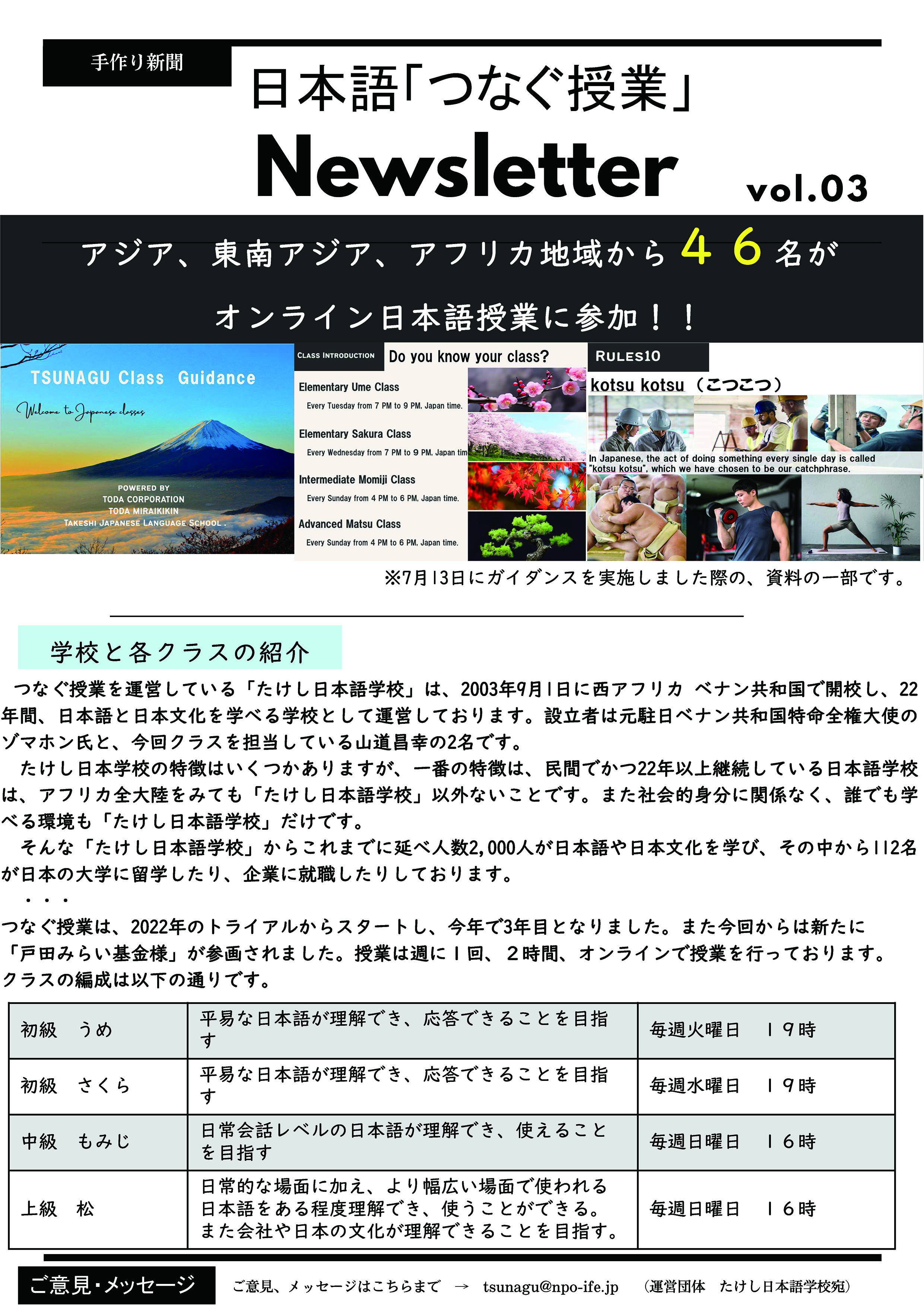 西アフリカ・ベナンの「たけし日本語学校」と結ぶ